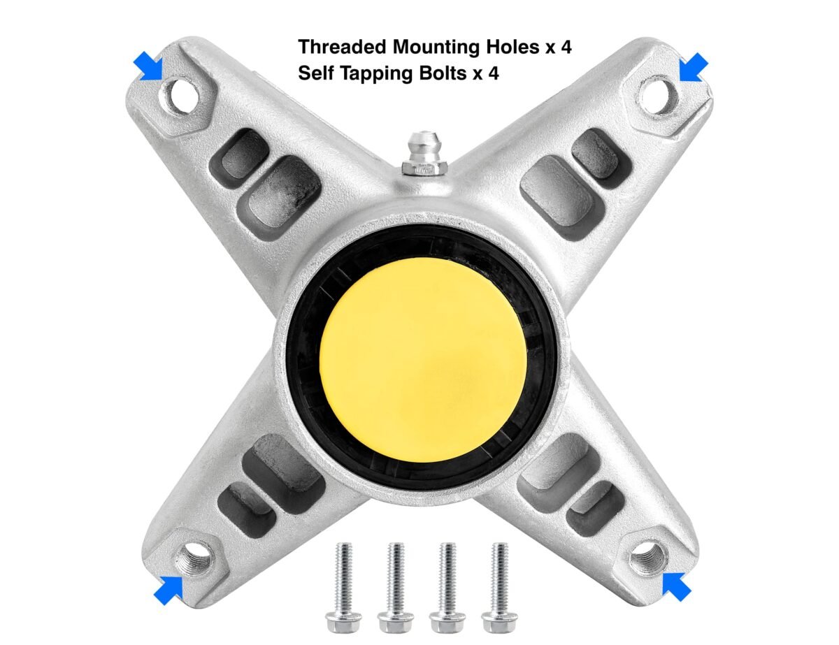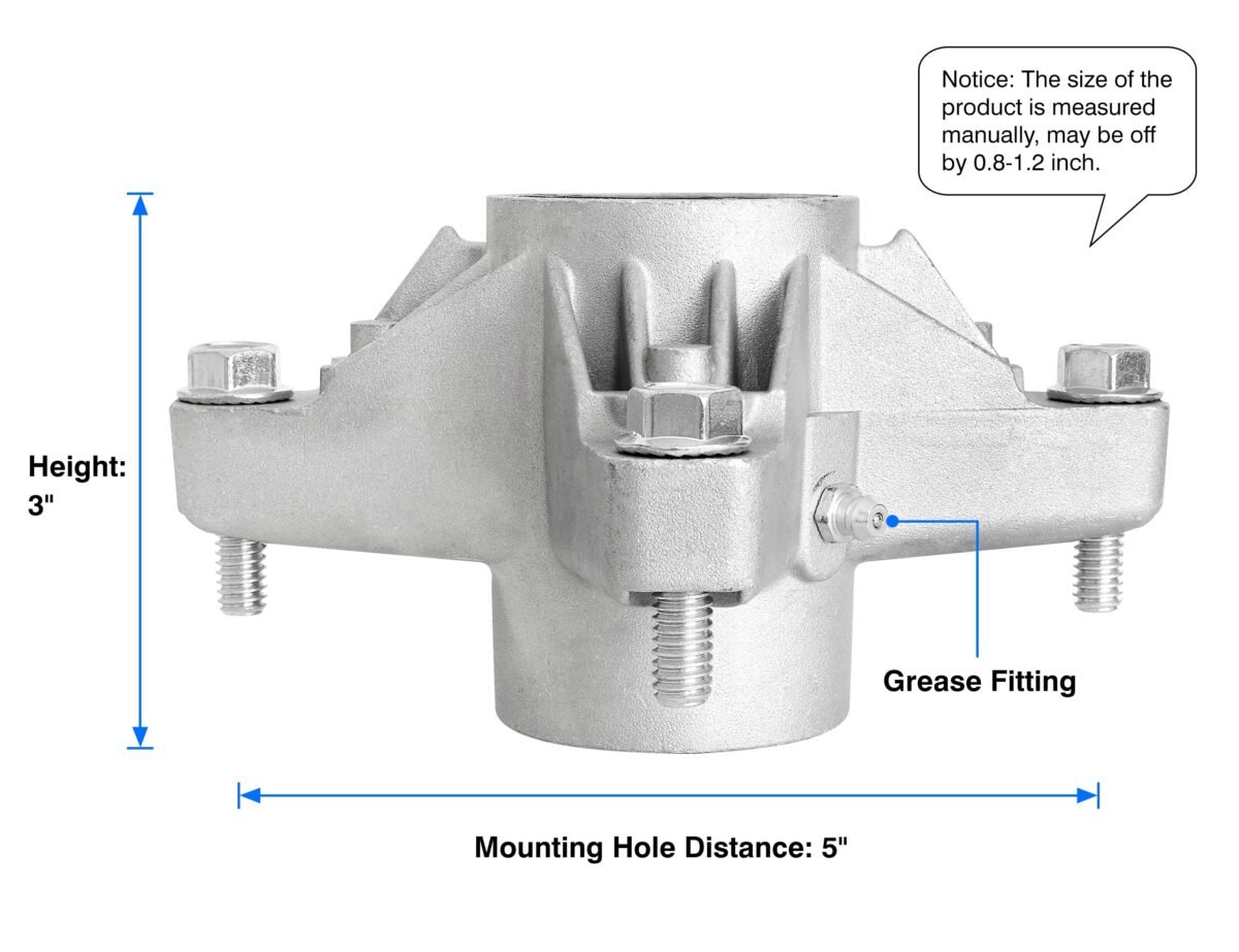 【Easy to Install】The spindle set came with 4 threaded mounting holes & bolts and 1 grease zerk fitting. Please remember to add grease before using.